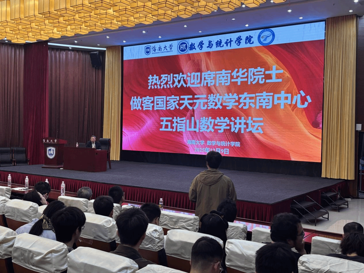 12月9日,中国科学院院士席南华教授应邀来必赢网络游戏平台,作题为“数学概述”的五指山数学讲坛第9讲学术报告。